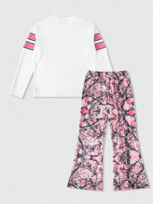 Men'S Hellstar Print T-Shirt and Bell Bottoms Set, Casual Crew Neck Short Sleeve Tee, Summer Street Fashion, Polyester 100%, Slight Stretch Knit Fabric, Regular Fit, 250gsm - Versatile Outfit for Daily Wear
