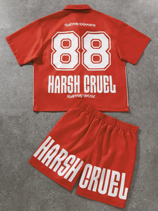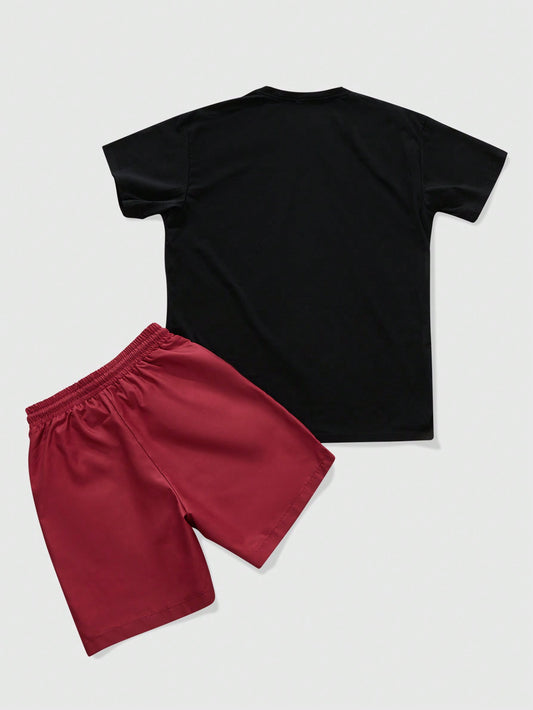 Manfinity Streetrush Manfinity Streetrush Men's Color Block Simple Slogan Printed Short Sleeve T-Shirt And Shorts Vintage Shirt Set,Men Two Piece Outfits Men S Shorts 2 Piece Set Men 2 Piece Set Shorts