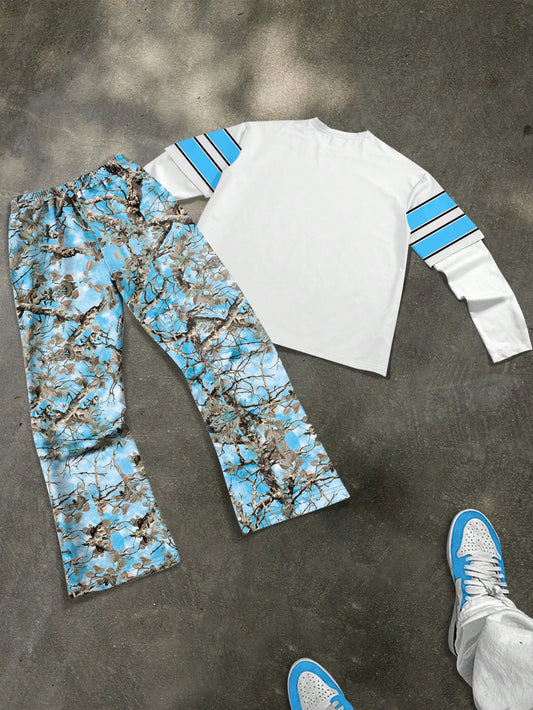 Manfinity EMRG Men's Long Sleeve Round Neck Casual Fashion T-Shirt And Pants Set