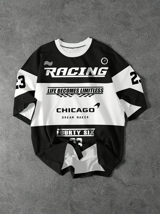 Iconic Racing Men's T-Shirt - Breathable, Sporty, and Ultra-Comfortable Round Neck Short Sleeve Tee with Unique Letter Print Design for Casual Summer Fashion