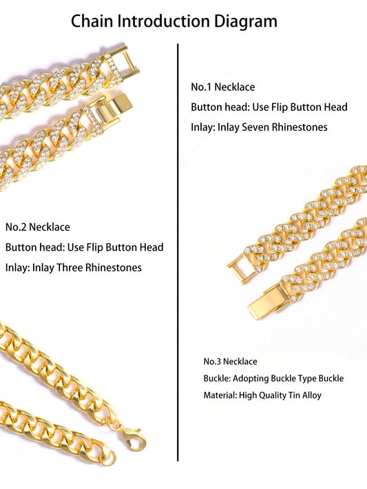 12mm Wide Men's Necklace and Bracelet Set - Zircon Inlays