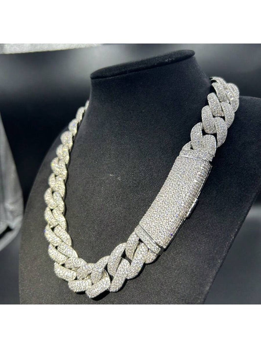 1pc 20MM Miami Long Clasp Cuban Chain Necklace, Brass Full Cubic Zirconia Hip Hop Jewelry For Men Daily Wear