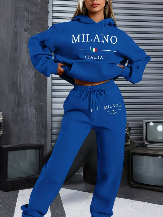 2024 Autumn And Winter Fashion Milan-Themed New Women'S Hooded Sweatshirt And Long Pants Set with a Hooded Long-Sleeve Casual Top.