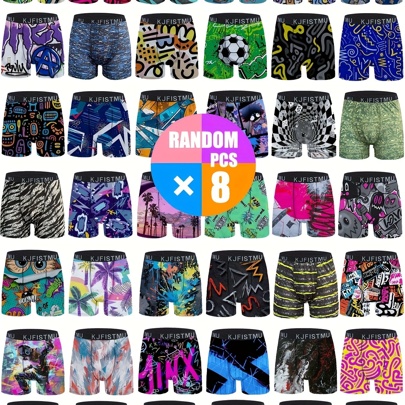 8 Packs Of Random Graffiti Printed Casual Sports Boxer Briefs, Breathable And Elastic, More Comfortable After Wearing!