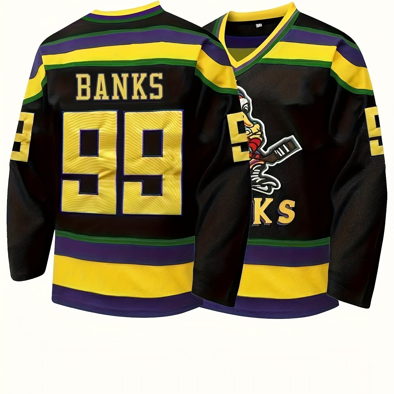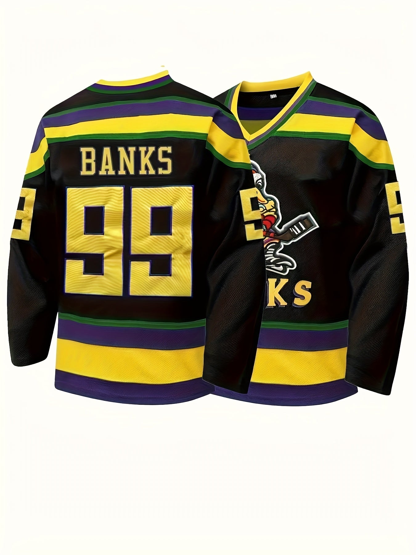 [Embroidered Detailing] Men's #99 Black & Golden Ice Hockey Jersey - Breathable, Embroidered V-Neck Captain's Sweatshirt with Striped Accents, Ideal for Sports & Casual Wear, Machine Washable