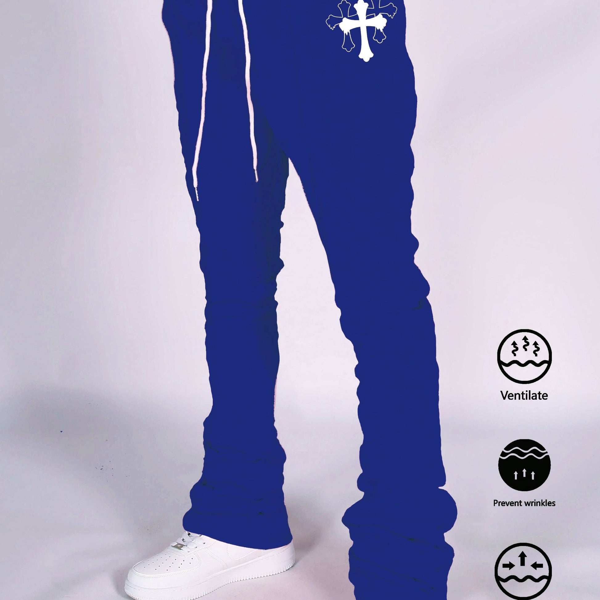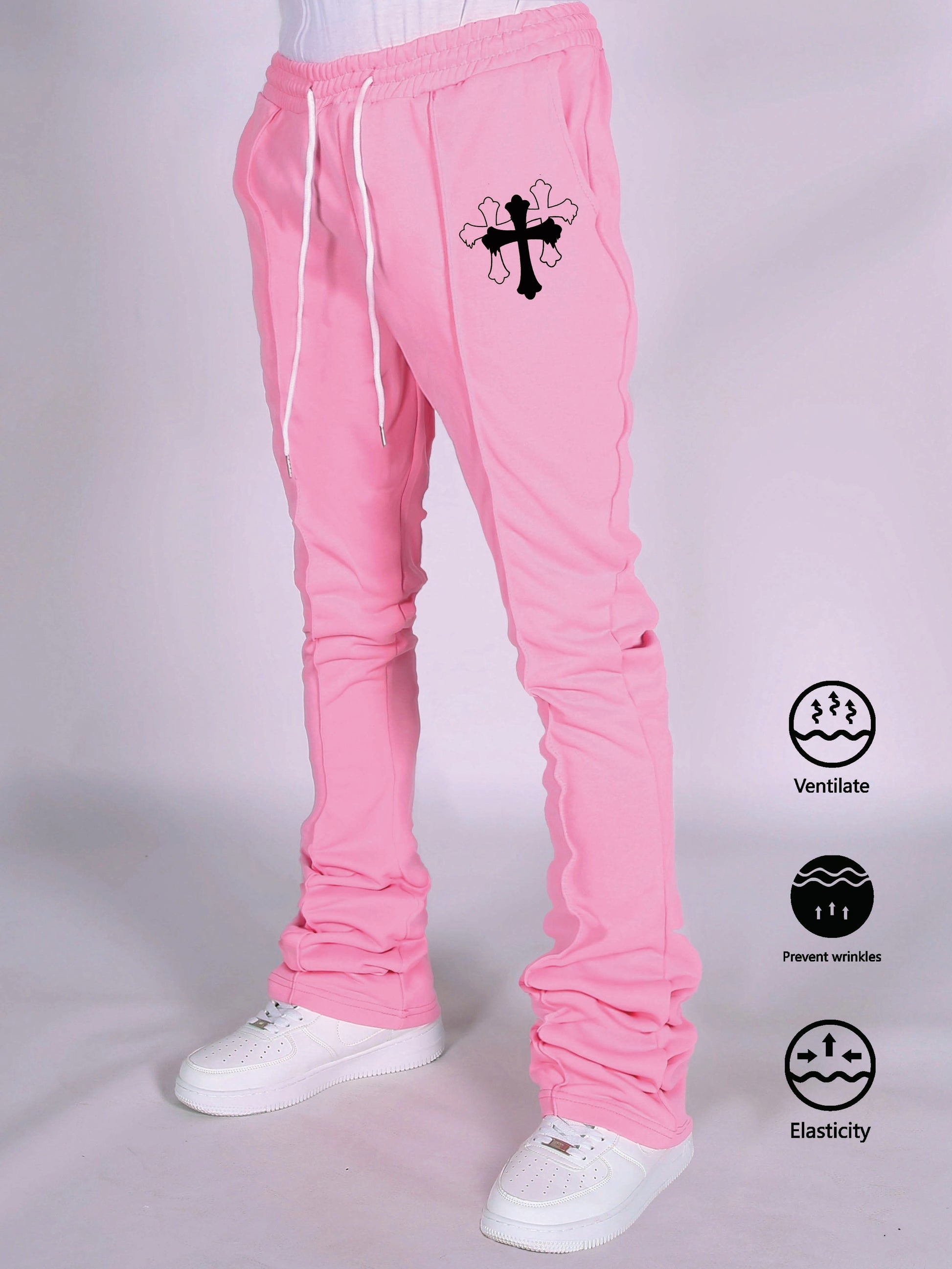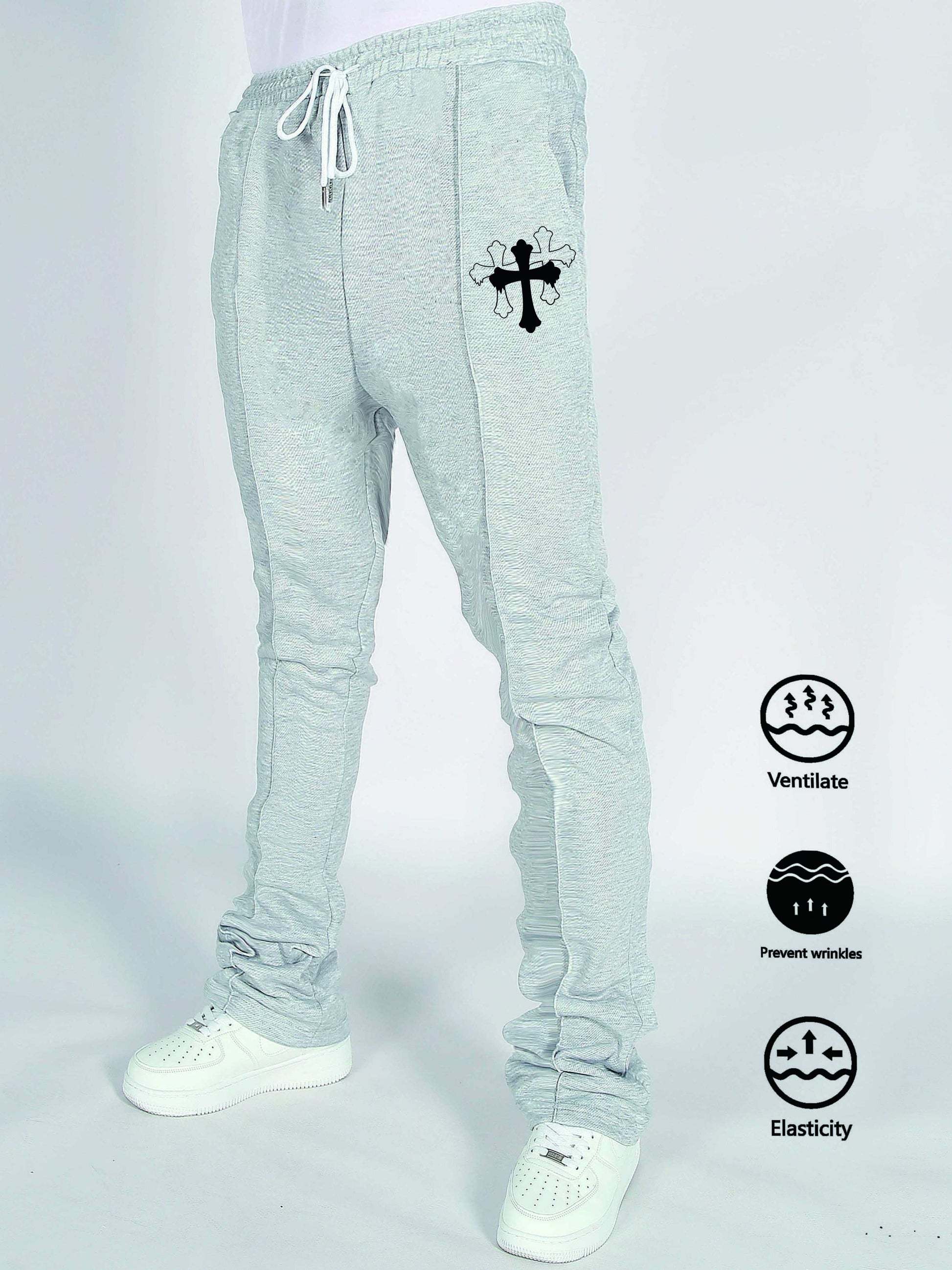 Men's Casual Drawstring Joggers with Cross Pattern - 100% Polyester, Slight Stretch Knit Fabric, Elastic Waist, Spring/Fall Season, Anti-Wrinkle, Breathable, Regular Fit Pants