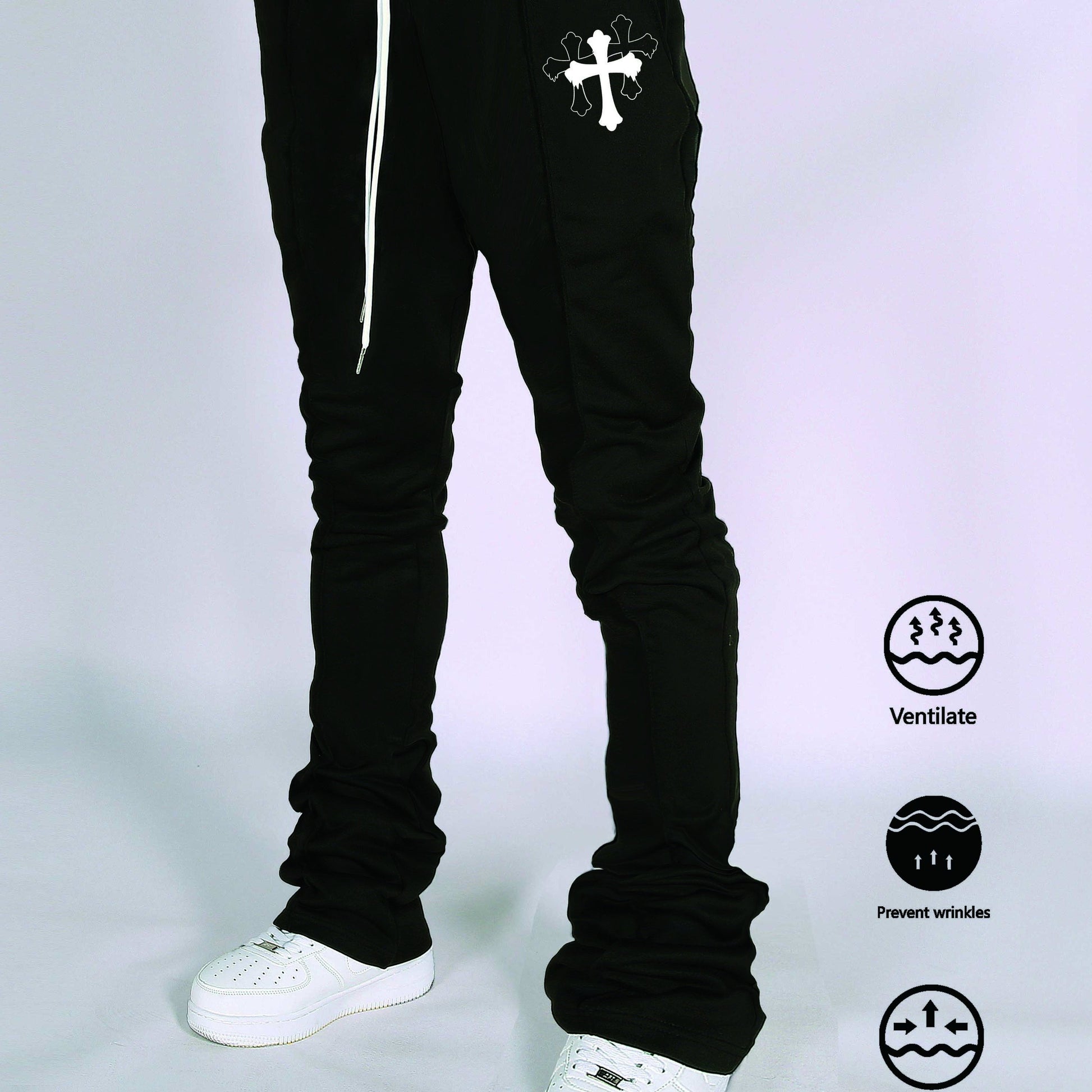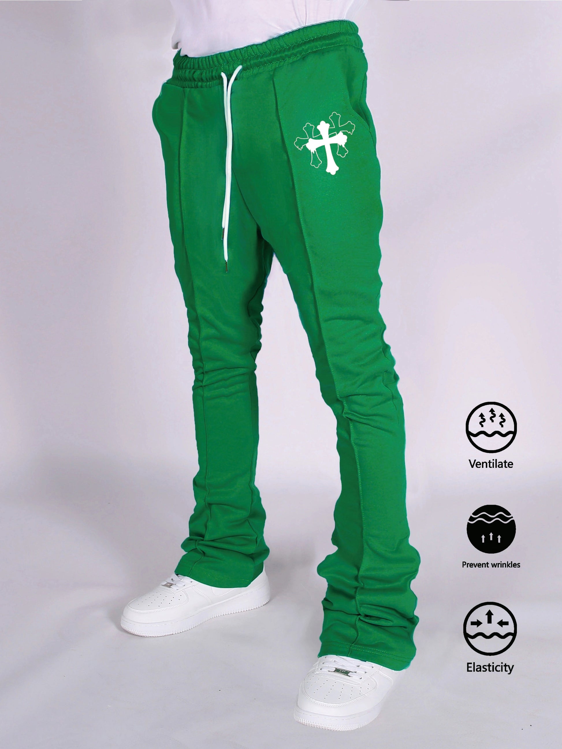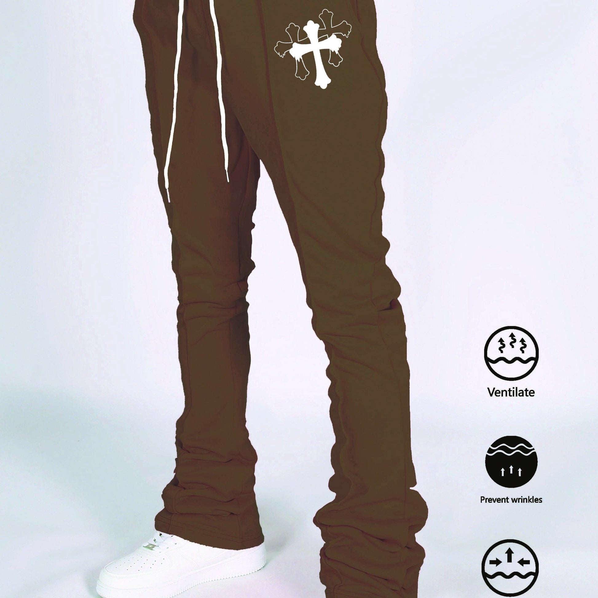 Men's Casual Drawstring Joggers with Cross Pattern - 100% Polyester, Slight Stretch Knit Fabric, Elastic Waist, Spring/Fall Season, Anti-Wrinkle, Breathable, Regular Fit Pants
