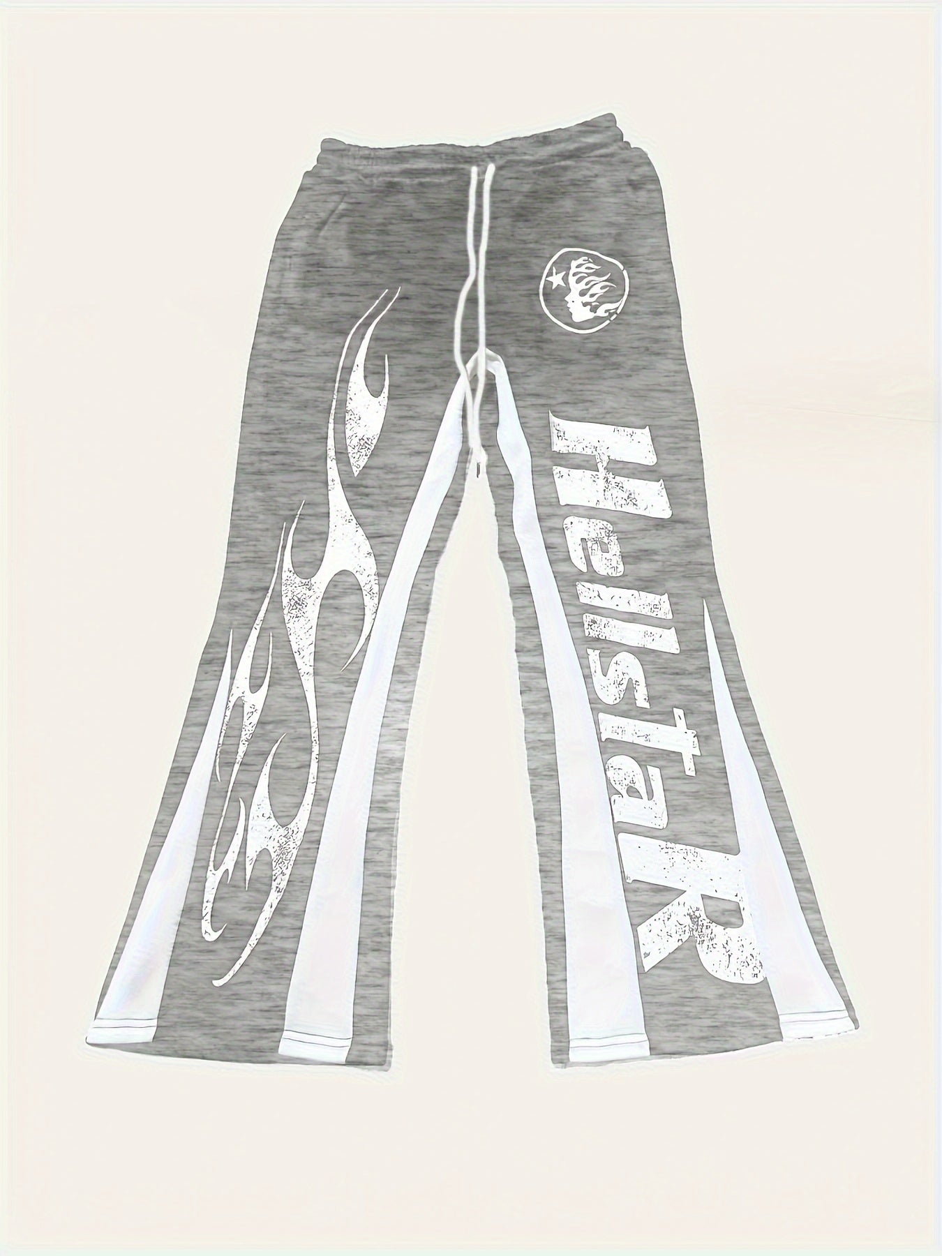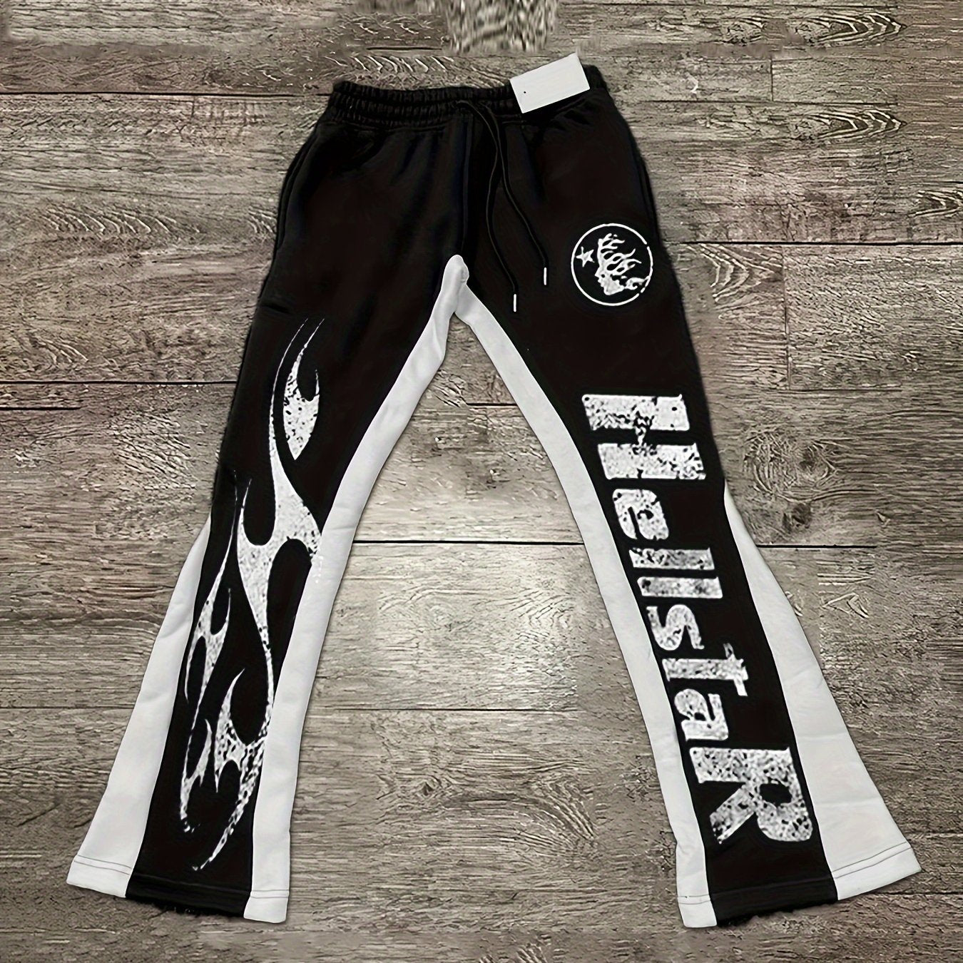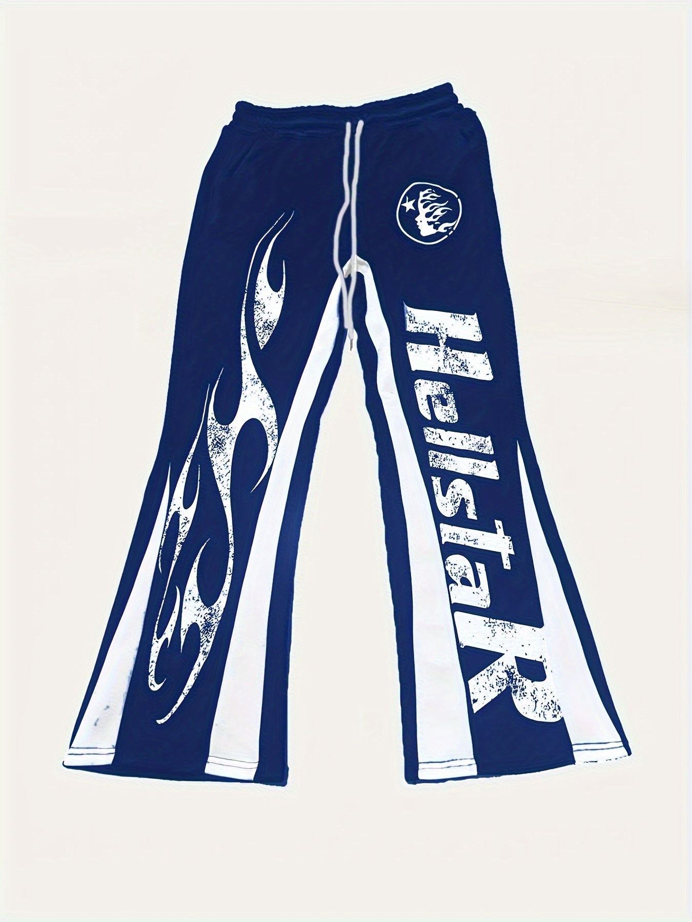 Men'S Casual Flare Leg Pants, Polyester Knit Fabric, Regular Fit, with Geometric Pattern, Asymmetrical Detail, Slight Stretch, for Fall/Winter Collection