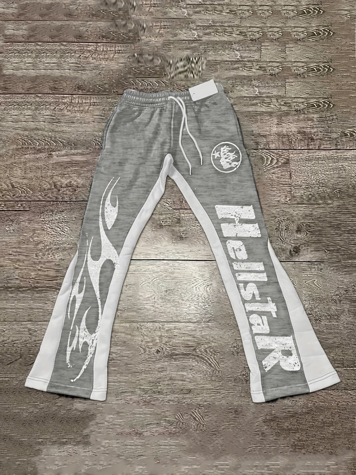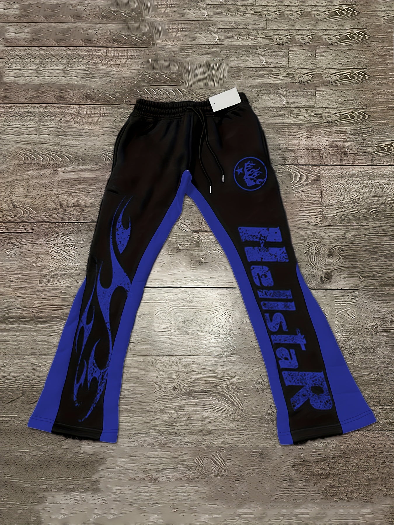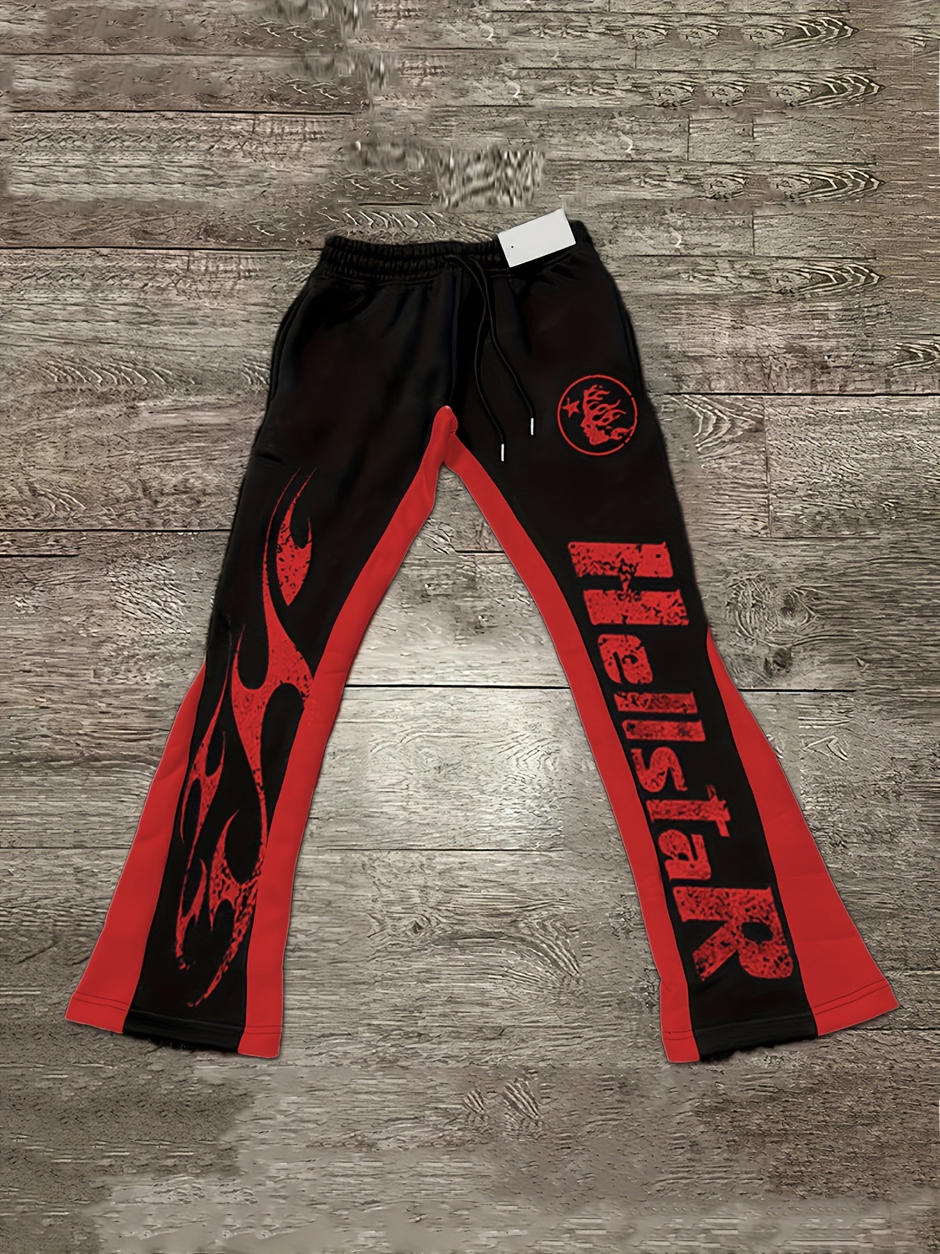 Men'S Casual Flare Leg Pants, Polyester Knit Fabric, Regular Fit, with Geometric Pattern, Asymmetrical Detail, Slight Stretch, for Fall/Winter Collection