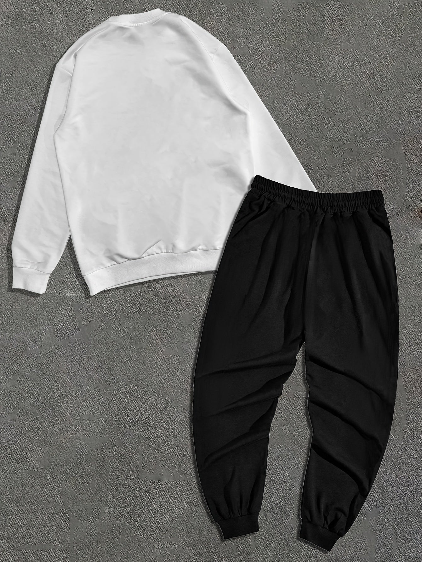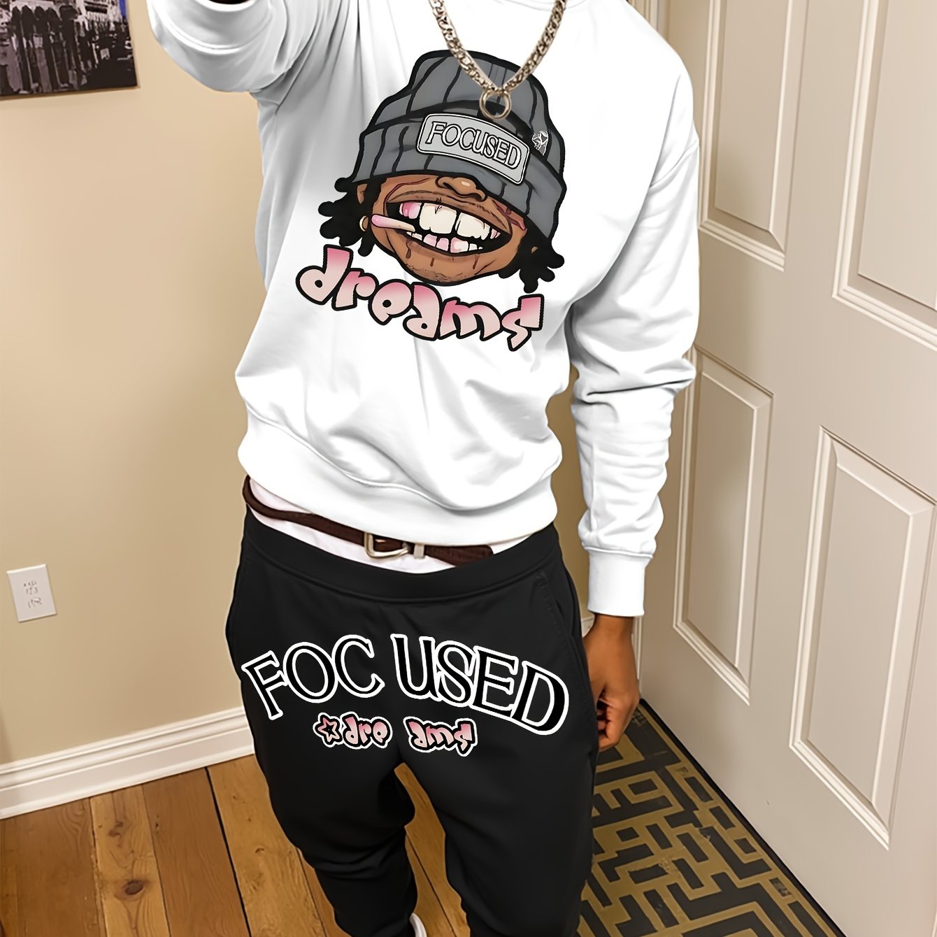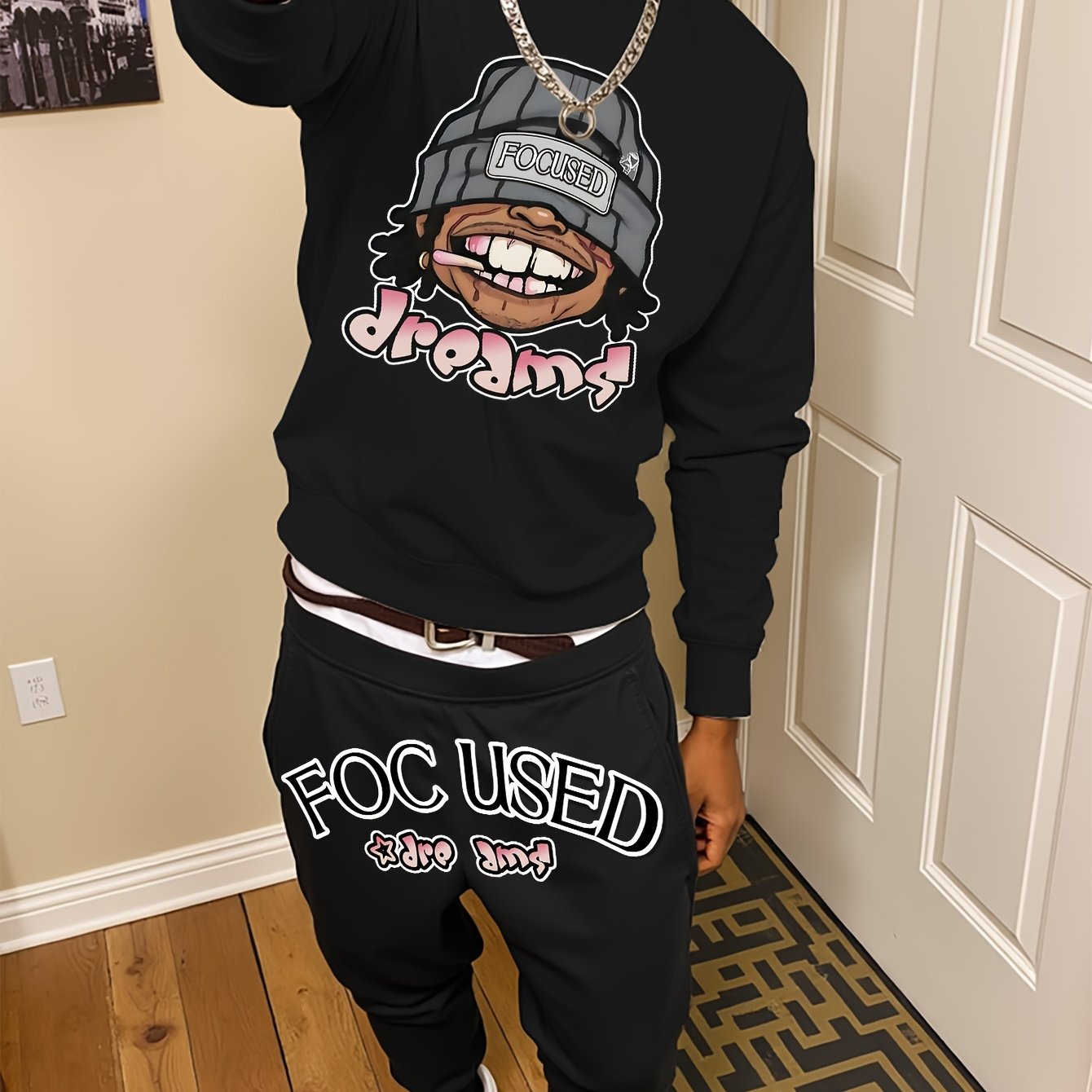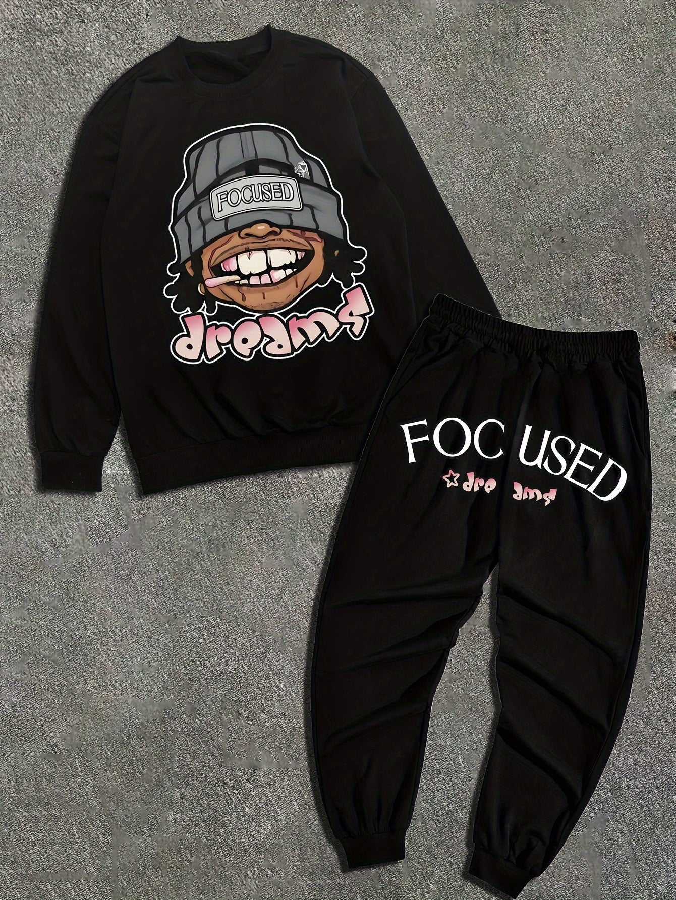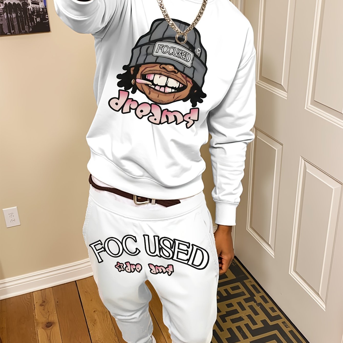 Men'S Casual Graffiti Print Sweatshirt and Pants Set, Crew Neck, Loose Fit, Knit Polyester 95%, 5% Elastane, Slight Stretch, Fall/Winter Lash Sets