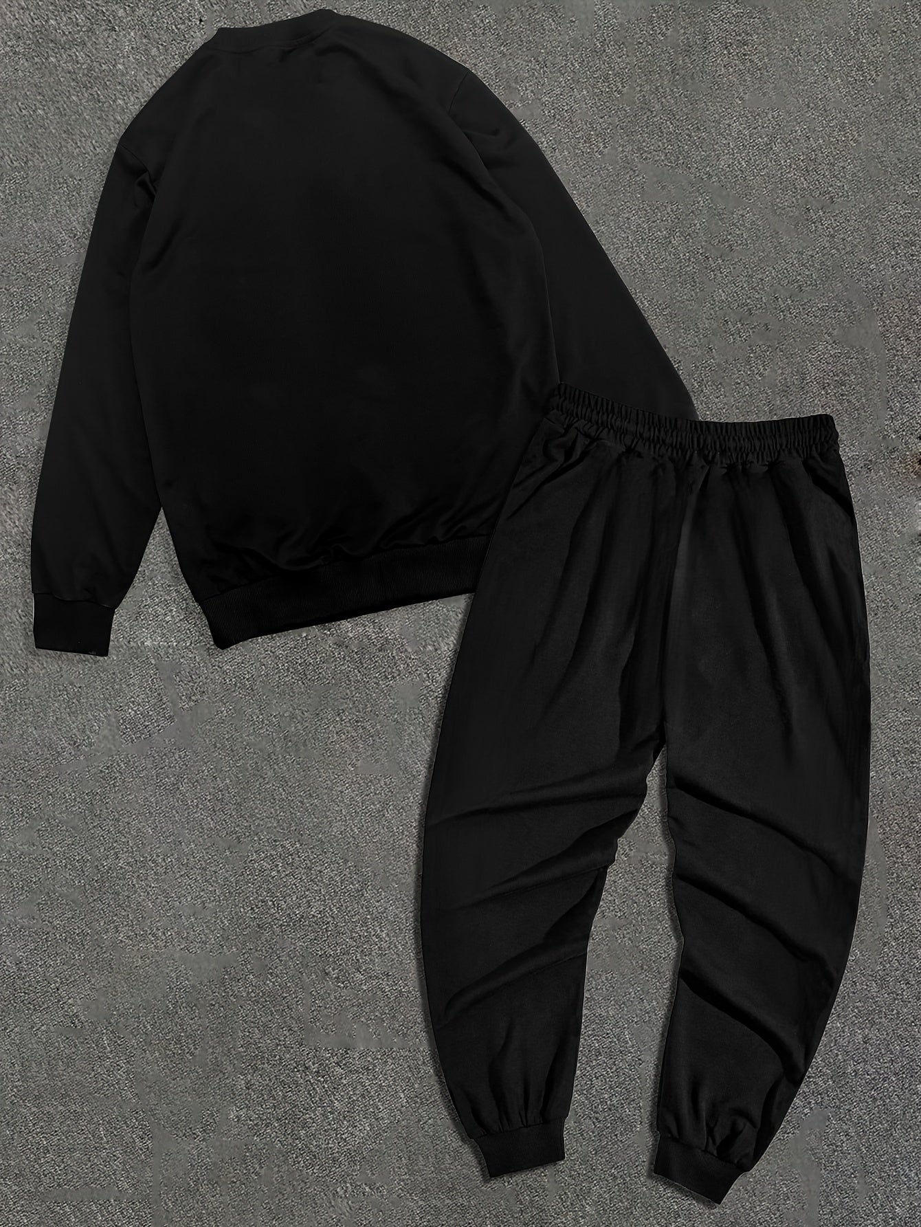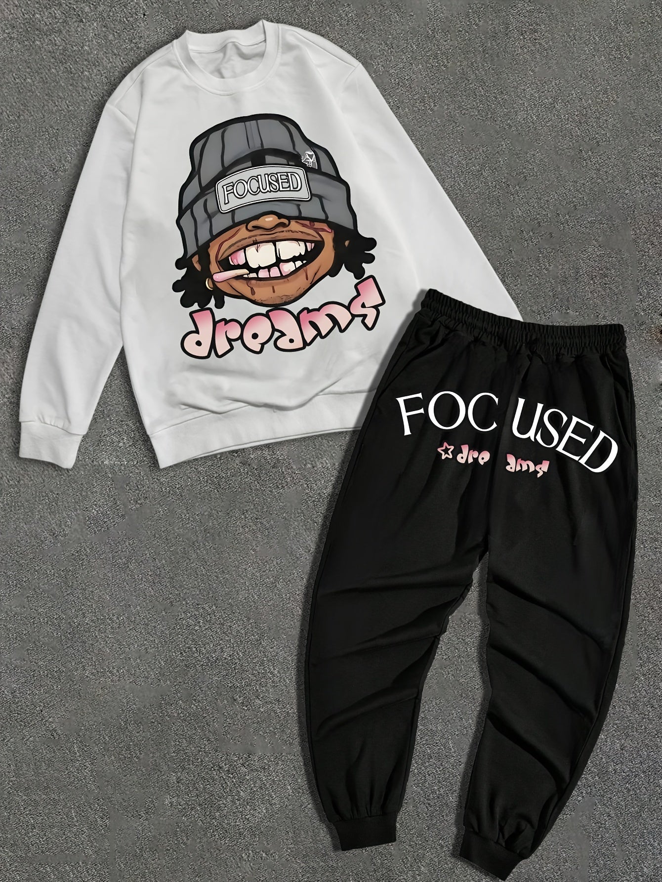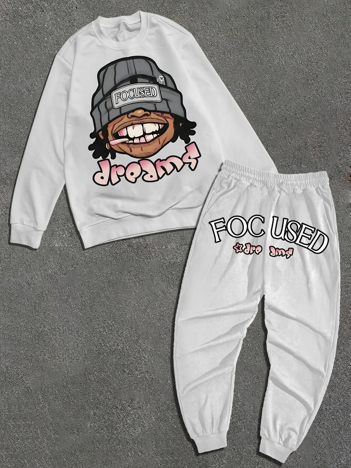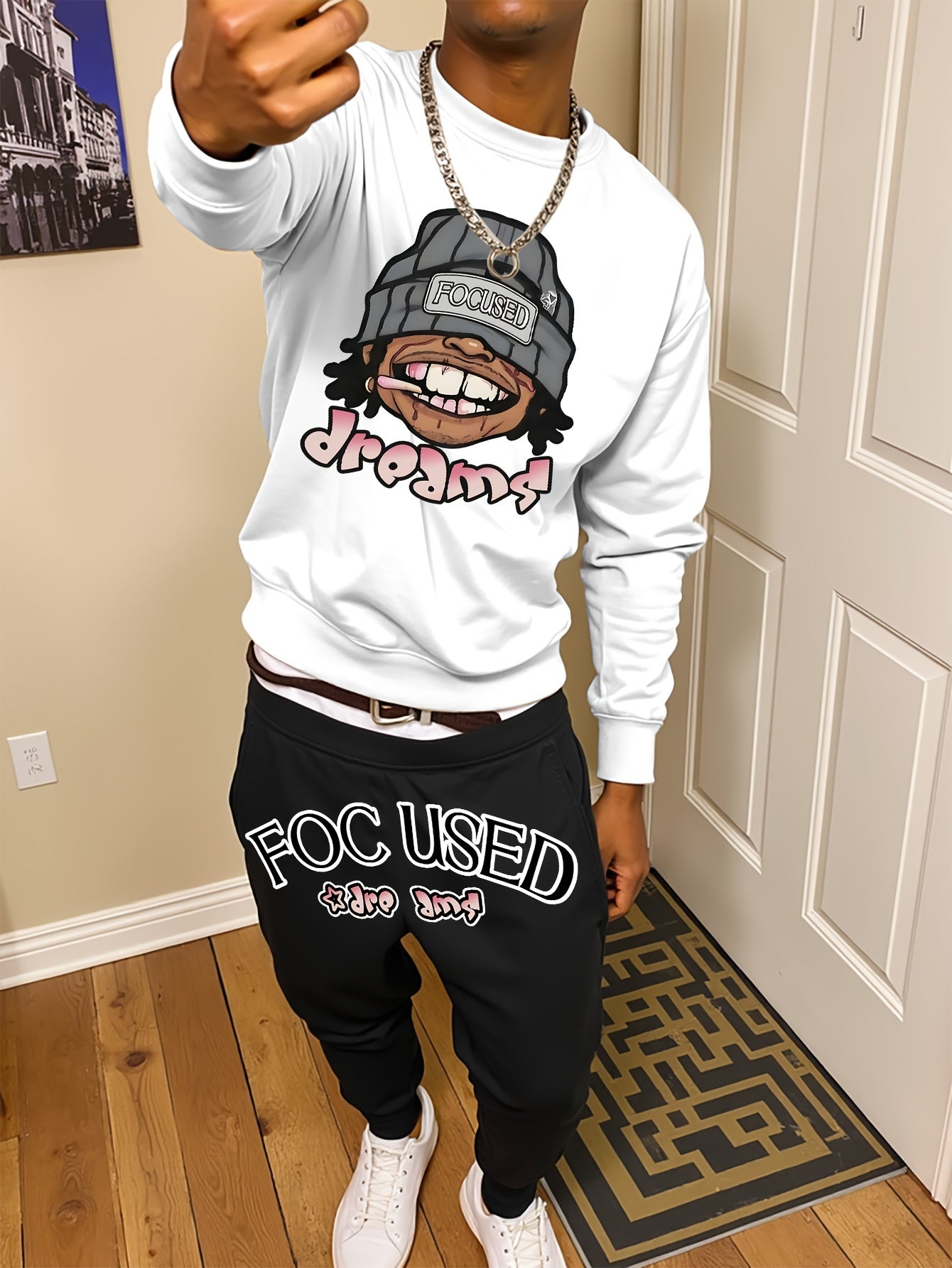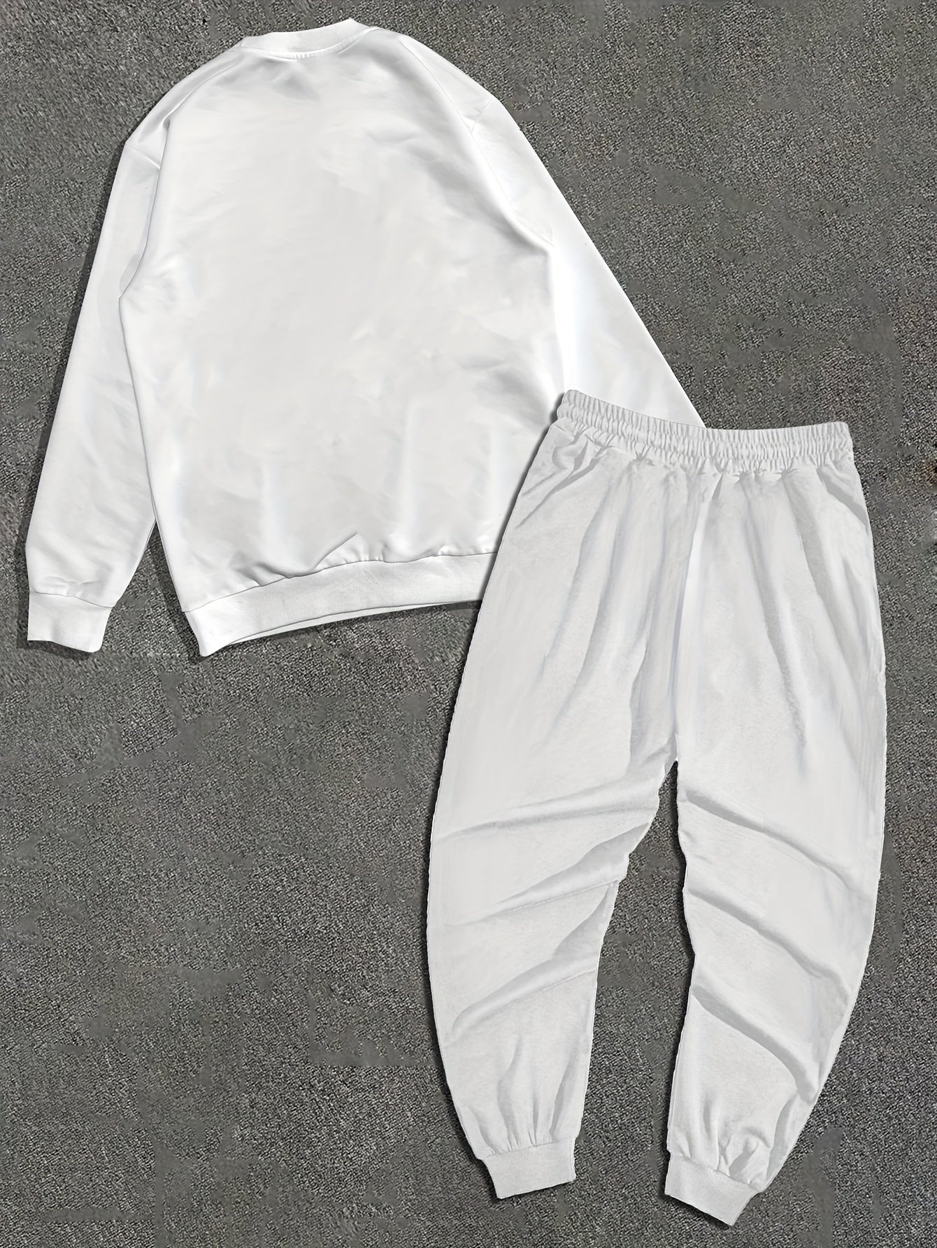 Men'S Casual Graffiti Print Sweatshirt and Pants Set, Crew Neck, Loose Fit, Knit Polyester 95%, 5% Elastane, Slight Stretch, Fall/Winter Lash Sets