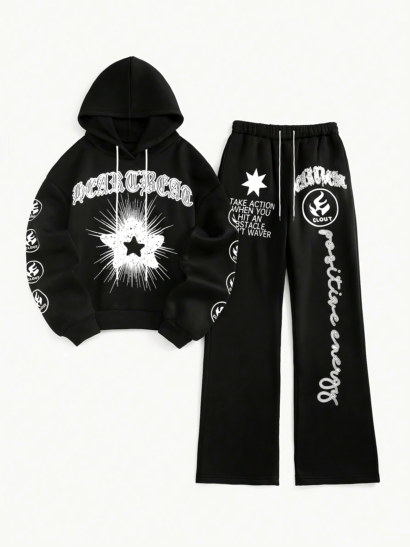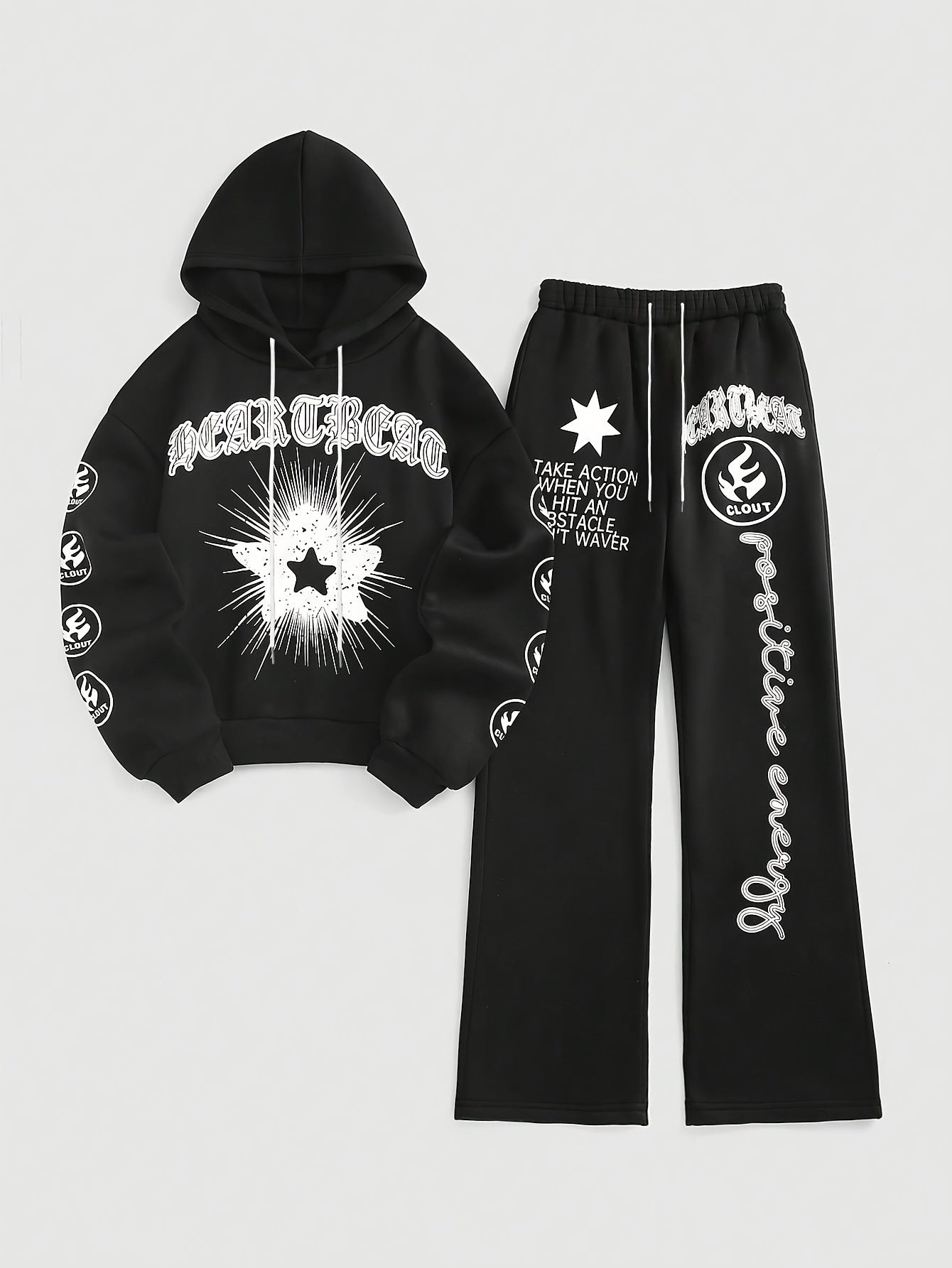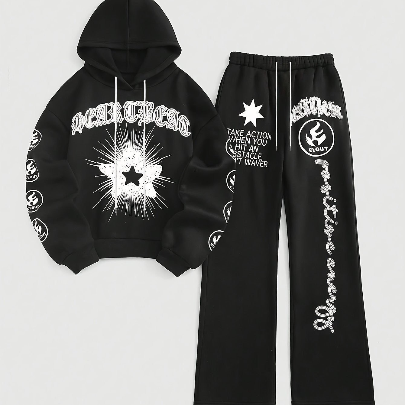 Stylish Plus Size Co-ords - Casual Letter Print Drawstring Hoodie and Pants Set for Women, Comfortable Long Sleeve Outfit with Adjustable Waistband and Relaxed Fit
