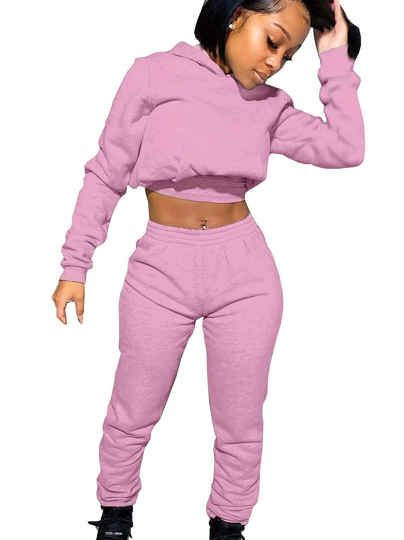 Women's Sport Suit: Solid Color Short Top + Sports Pants 652